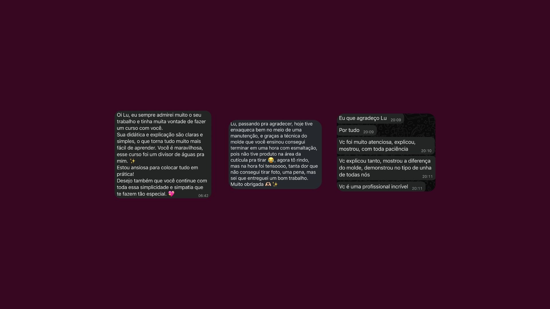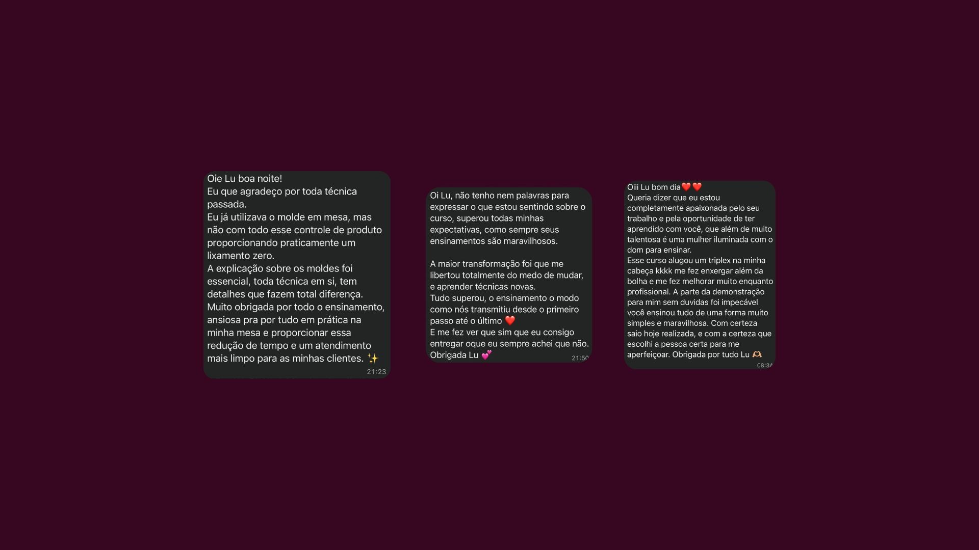 O que nossas alunas estão falando dos nossos cursos: