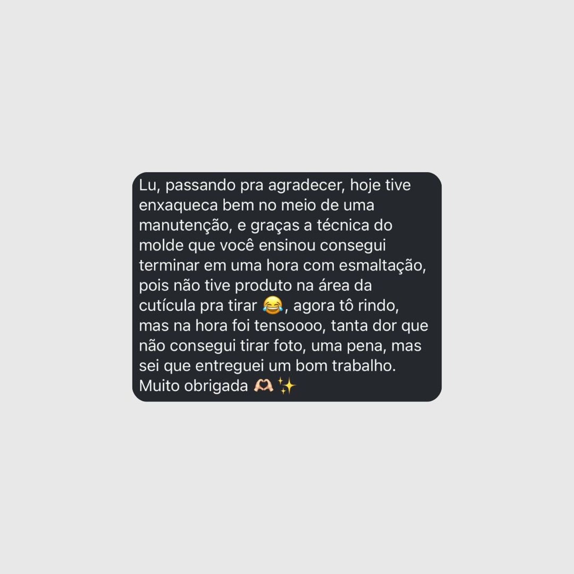 Referência em unhas naturais, conquistou sua tão sonhada agenda cheia, sem abrir mão do seu tempo de qualidade, e cobrando a altura do que vale!